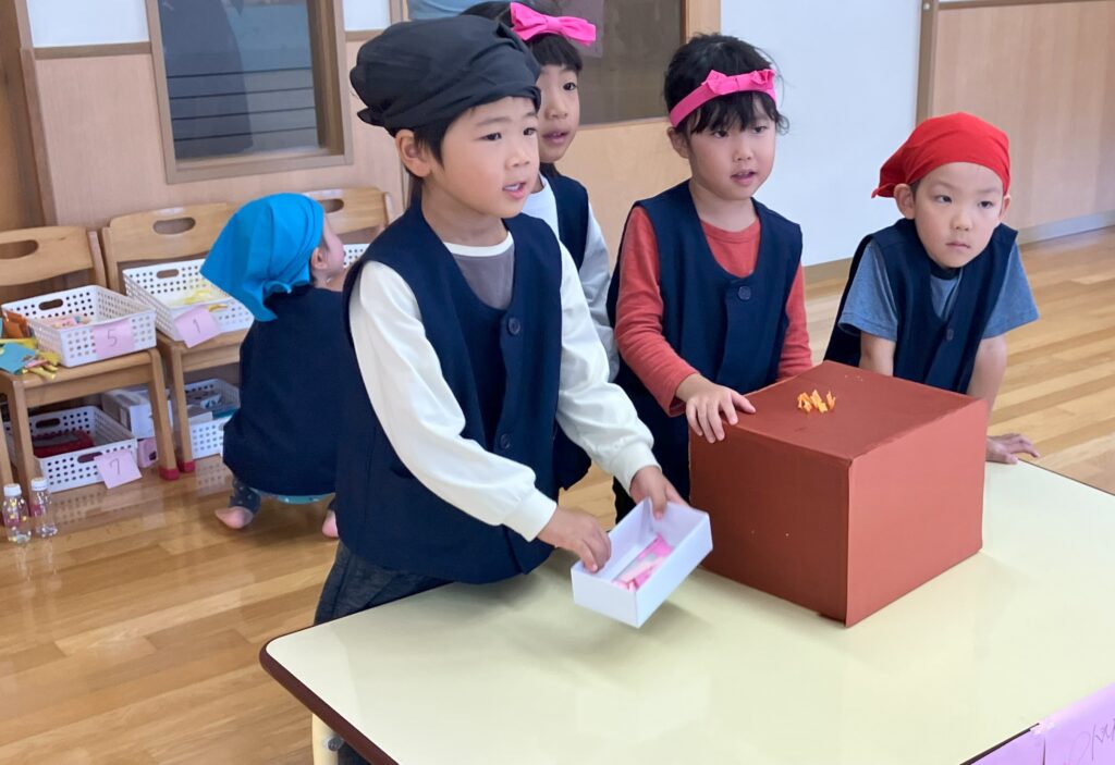 年長児がお店屋さんを開いて、他の学年の子どもたちや地域の方を招待しました。
